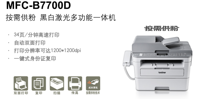 兄弟( brother) 黑白激光打印復(fù)印掃描一體機(jī) MFC-B7700D按需供粉 雙面 標(biāo)配+1個(gè)原裝粉盒