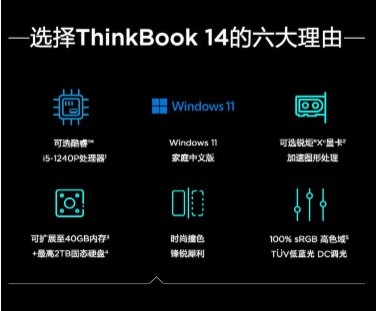 ThinkBook 14 14英寸商務(wù)辦公輕薄筆記本電腦 高清屏 i5-1240P 16G 1T W11